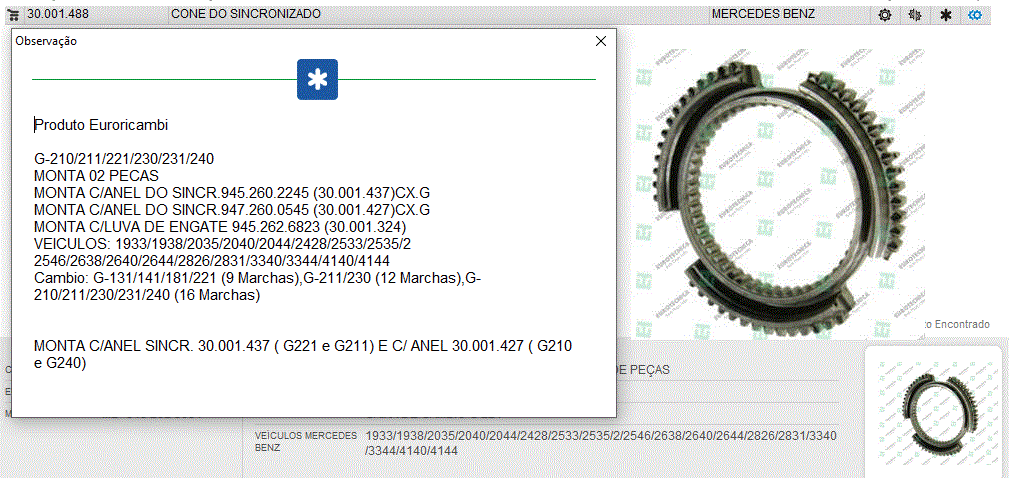 47629 - CONE ANEL SINCRONIZADO CAMBIO MB CONSTANTE 1/2 G 131
