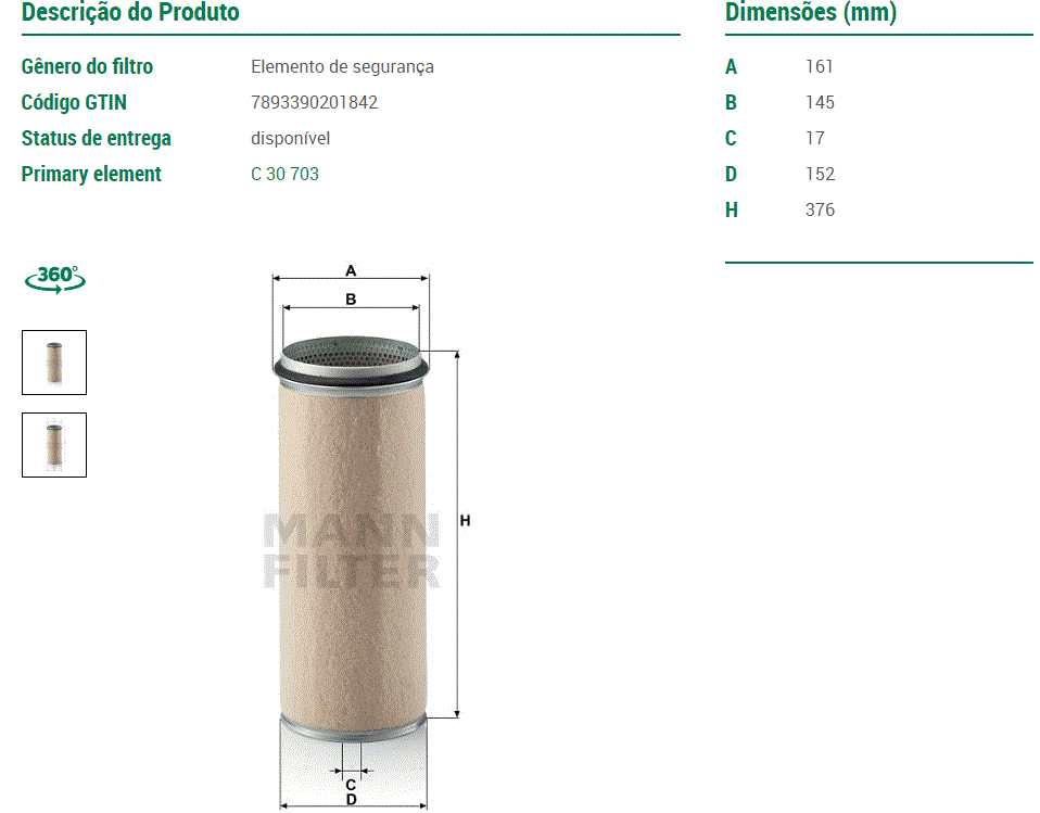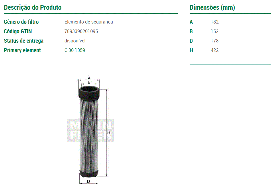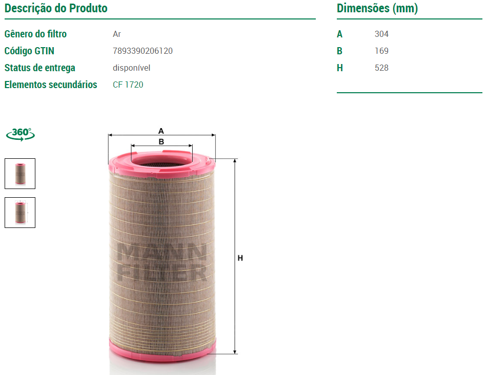47658 - FILTRO AR SEGURANCA SCANIA SERIE 5