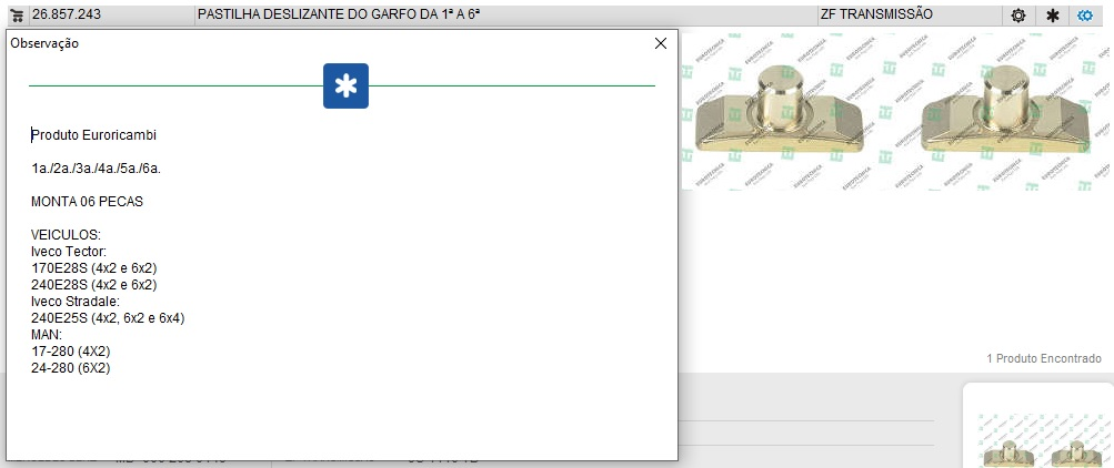 47693 - PASTILHA GARFO CAMBIO MB/VW/IVECO ZF 9S-1110/4K-120/4S-120/1 USA-6