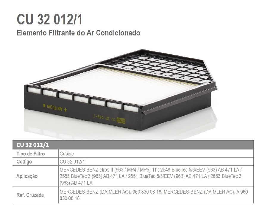 47989 - FILTRO AR CONDICIONADO CABINE MB ACTROS 2548/2553/2653 BLUE TEC 5/6 OM471LA